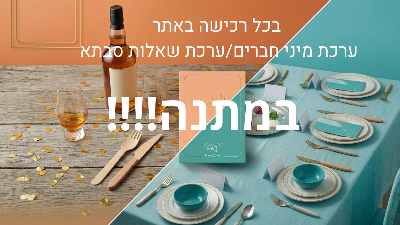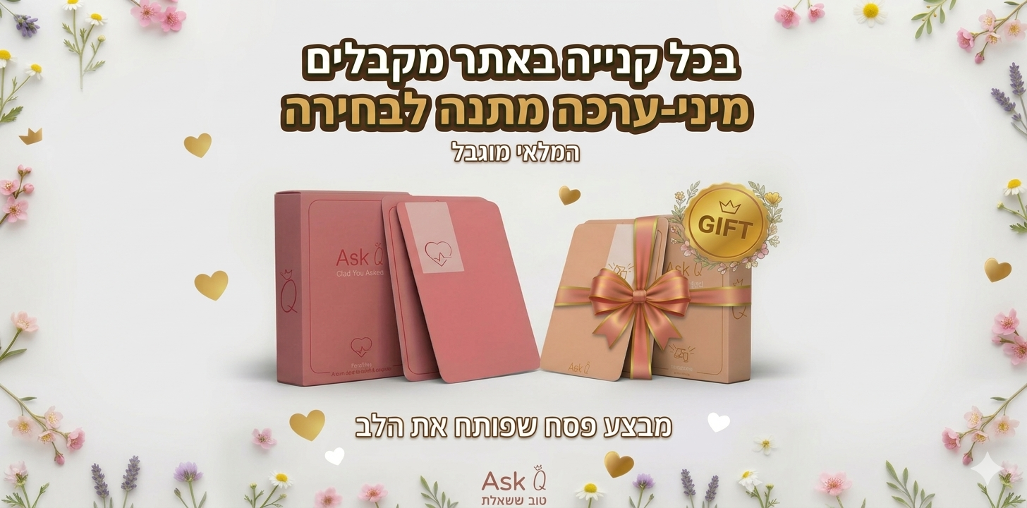משחק השאלות שיעיף כל ערב, מפגש או אירוע באוויר, ישדרג לכם את הדייט, או את ארוחת השישי המשפחתית, תלוי איזו ערכת משחק תבחרו שתגיע אליכם עד הבית – לנו יש ערכה לכל מטרה שתבחרו כדי לשבור שגרה עם ערב מצחיק, מרגש, קליל, אינטימי, והכי פתוח שיש.