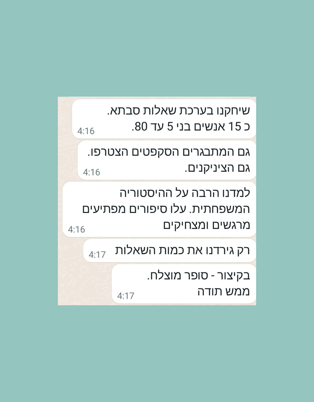 הוא זרם. "איזה משחק?" הוא שאל, "משחק השאלות" אני עניתי. ומשם הכל היסטוריה.