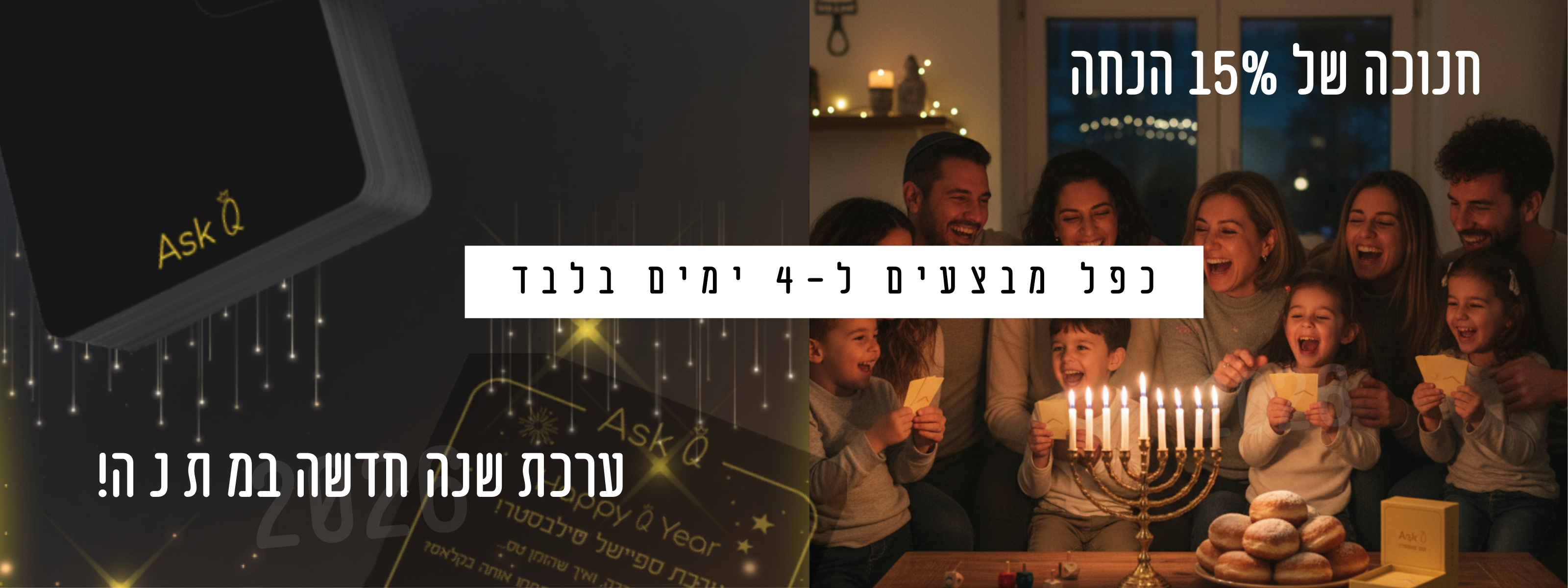 משחק השאלות שיעיף כל ערב, מפגש או אירוע באוויר, ישדרג לכם את הדייט, או את ארוחת השישי המשפחתית, תלוי איזו ערכת משחק תבחרו שתגיע אליכם עד הבית – לנו יש ערכה לכל מטרה שתבחרו כדי לשבור שגרה עם ערב מצחיק, מרגש, קליל, אינטימי, והכי פתוח שיש.