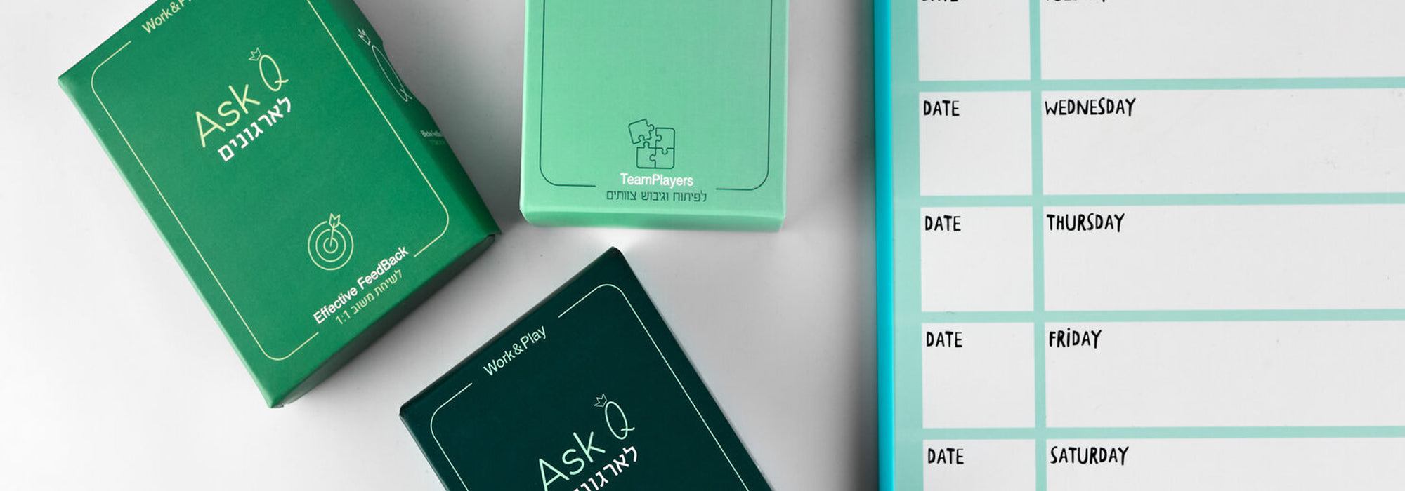 הקולקציה שלנו לארגונים Work&Play - כל ערכה היא כלי מקצועי ניהולי לתהליך אחר בארגון שלכם.